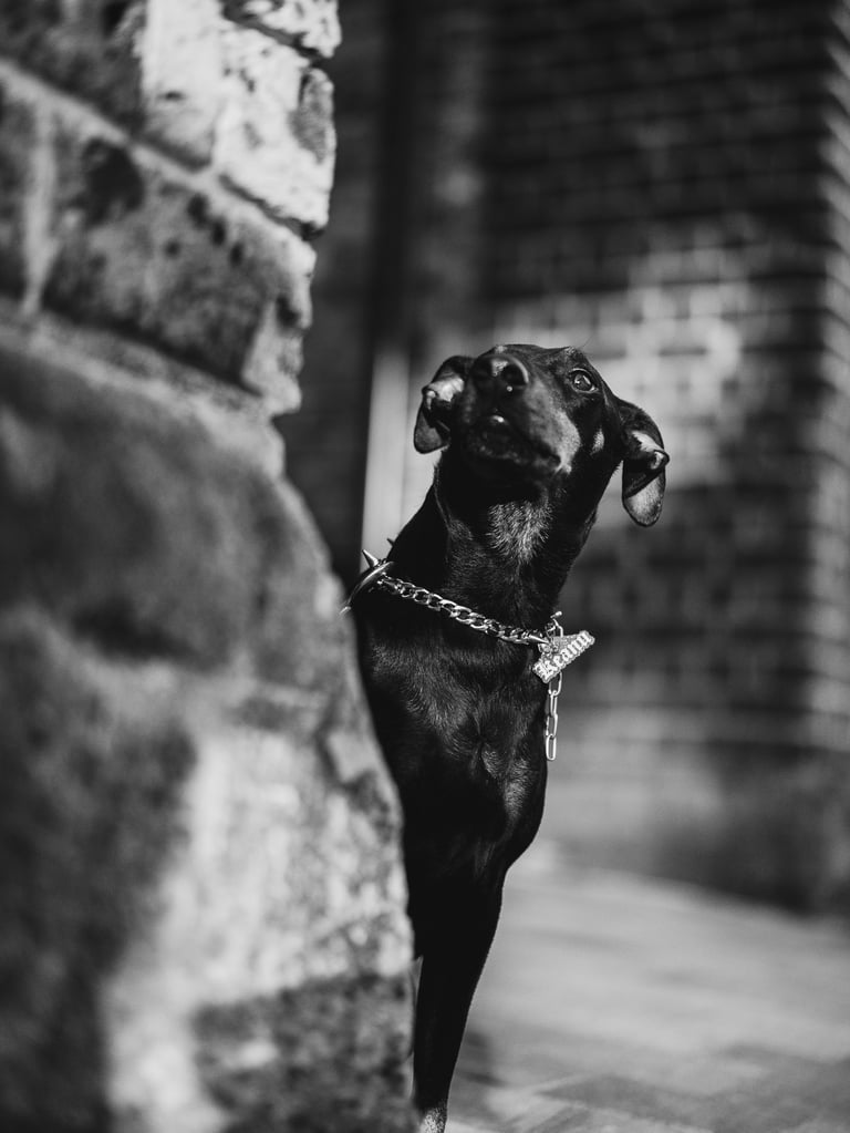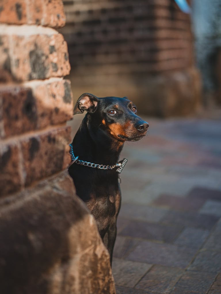 Meet Keanu, a shy but sweet Manchester Terrier with a quietly cheeky streak that comes out once he feels safe. With the gentle encouragement of his loving parents, he slowly warmed up to the camera — offering soft glances, curious poses, and the occasional playful spark.