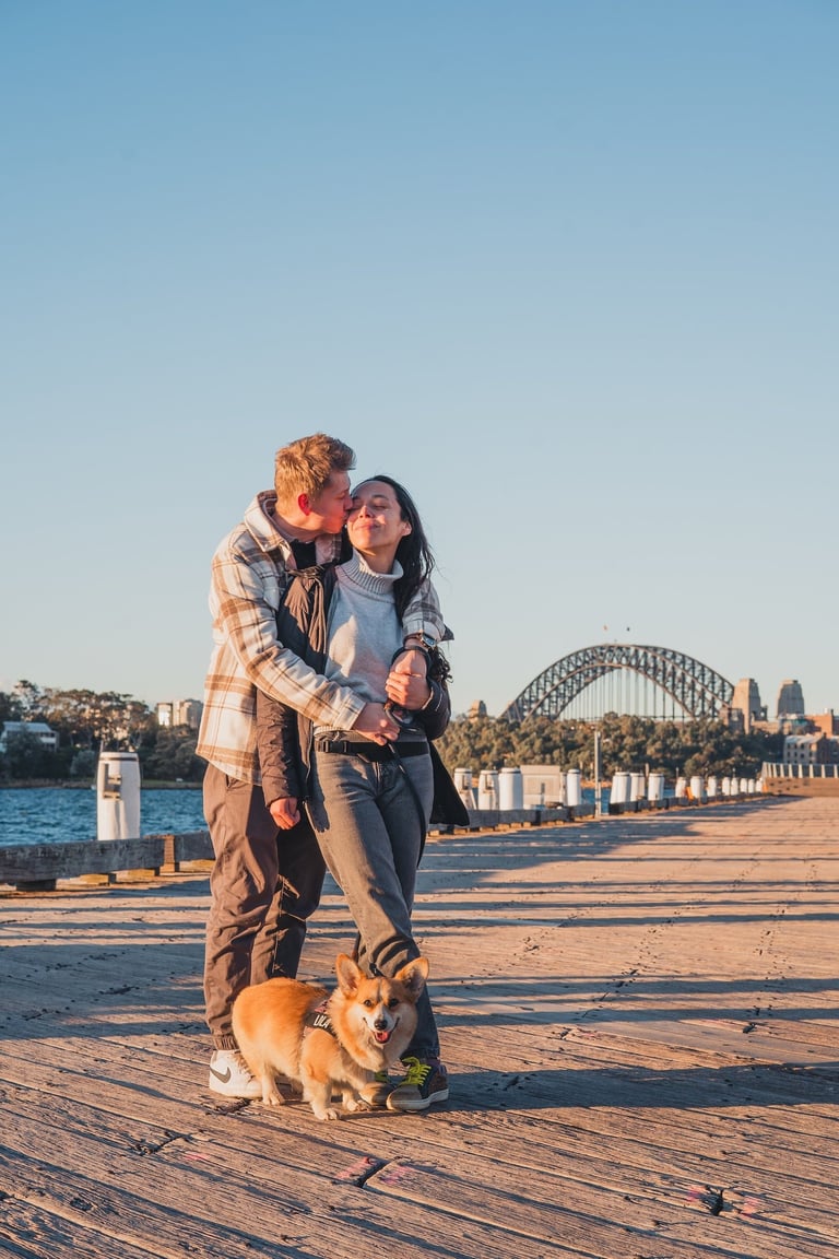 Shot in the soft glow of a winter sunset, the golden light wrapped beautifully around her fur, creating a dreamy backdrop that highlighted her playful personality and irresistible charm.